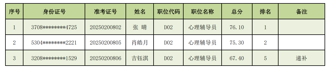 D02专职辅导员岗,通过资格复审的考生(见附件1)。