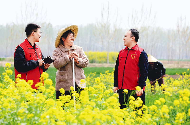 各地区以开展深入贯彻中央八项规定精神学习教育为契机,组织力量深入基层一线、田间地头走访调研,了解群众“急难愁盼”问题,将作风建设成果切实转化为为民服务的实际成效。图为2025年4月8日,山东省临沂市郯城县党员志愿者在田间了解春季农业生产及乡村产业发展情况。 视觉中国 张春雷/摄
