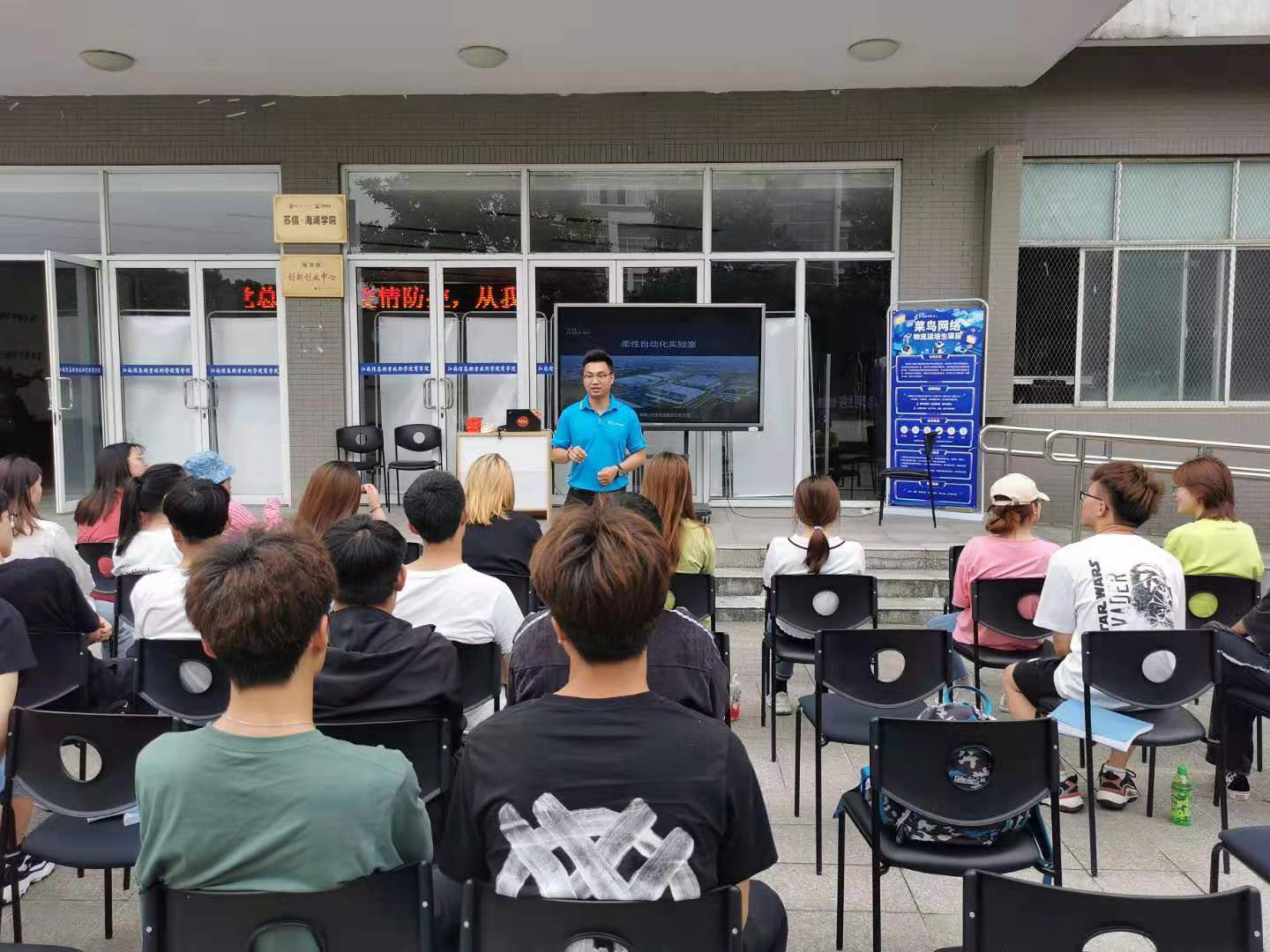 在展示中,菜鸟供应链王井坤经理给同学们介绍了目前物流信息产业的发展现状,行业龙头企业应用物流科技的情况,通过提问与同学们开展互动。菜鸟供应链无锡地区物流自动化设备运维团队在现场搭建了物流AGV小车的应用场景,给同学们介绍了AGV小车的使用原理,如何规划AGV小车行驶路线、撰写后台脚本的方法,鼓励物流专业的同学,在学习物流专业知识的同时,能跨界融合学习简单的计算机编程,拓宽职业发展路径。