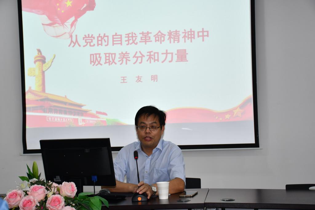 王友明书记从新民主主义革命时期、社会主义革命和建设时期、改革开放和现代化建设时期和十八大以来中国特色社会主义新时代四个时期的6次具有里程碑意义的自我革命回顾了中国共产党的历史。他详细解读每个历史事件,以生动的故事诠释了中国共产党组织建设、制度建设和纪律建设。内容丰富全面,王书记希望全体党员立足岗位,脚踏实地,争做优秀的共产党员,为学校高质量发展做出应有贡献。