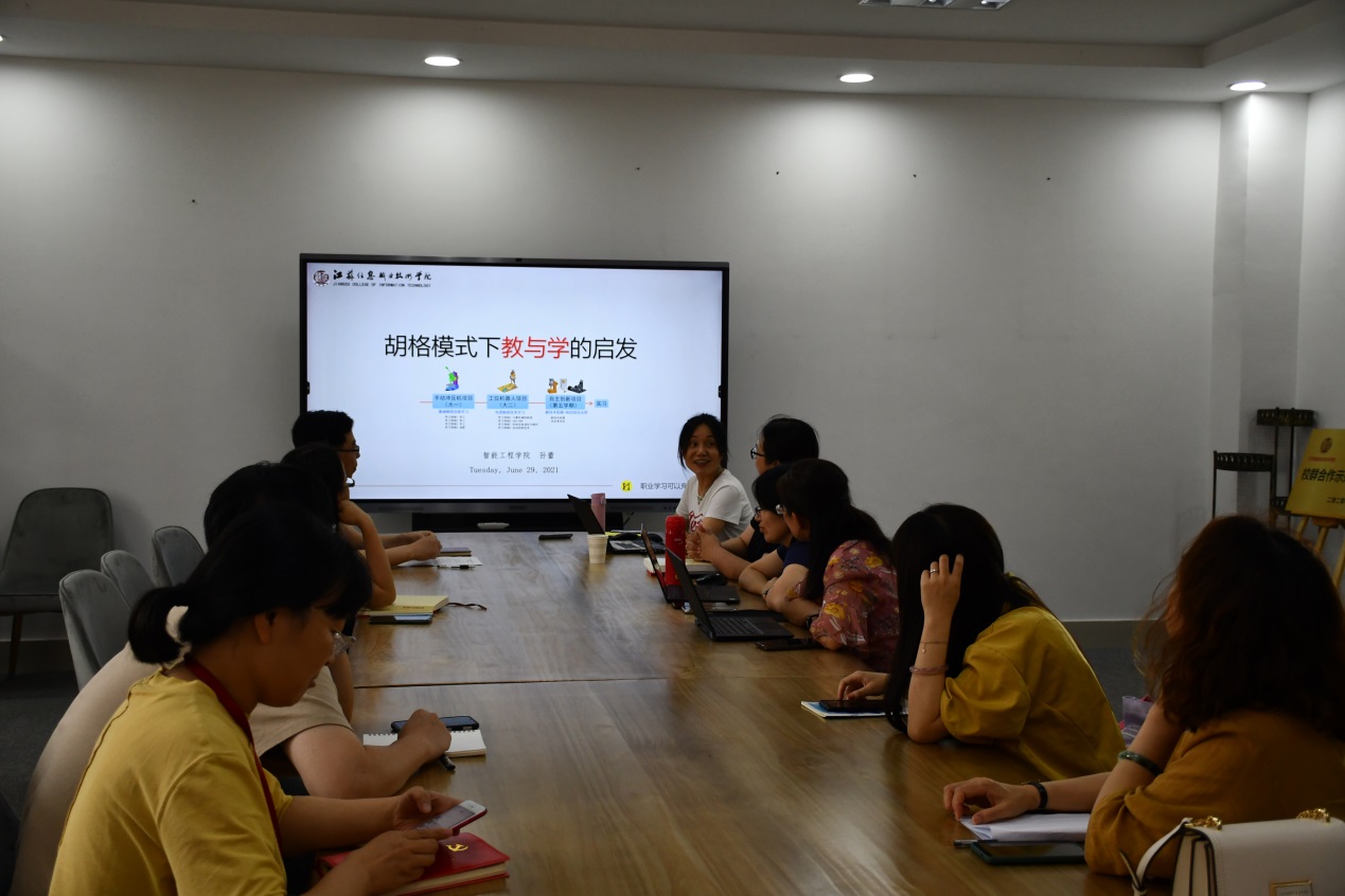 为了进一步推动胡格教学模式在课程建设中的应用,更好的开展课程建设、专业建设工作,商学院于6月29日下午召开了精益生产胡格教学项目阶段性总结交流会。商学院院长蔡丽巍、副院长王国才,课程共建人智工学院孙蕾老师,商学院精益生产胡格项目团队老师参加了本次交流研讨。