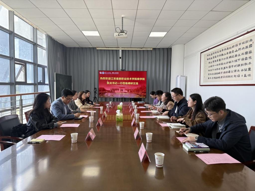 会上,管理工程学院党委书记徐娟对我院一行表示热烈欢迎,详细介绍了南京工程学院及管理工程学院的历史沿革、学科建设、人才培养特色等概况;管理工程学院党委副书记许发磊对该院学生工作品牌进行了系统阐述。张炎书记对管理工程学院在两校“3+2”贯通培养项目中给予的大力支持表示诚挚感谢,并介绍了商学院的办学历史、专业设置、产教融合等方面情况。双方就特色党建品牌培育、辅导员队伍建设及“一站式”学生社区建设等工作展开了深入研讨。双方一致同意,应进一步拓展校际交流、密切师生互访、加强团学活动互鉴,共同推动校际协同育人取得新成效。