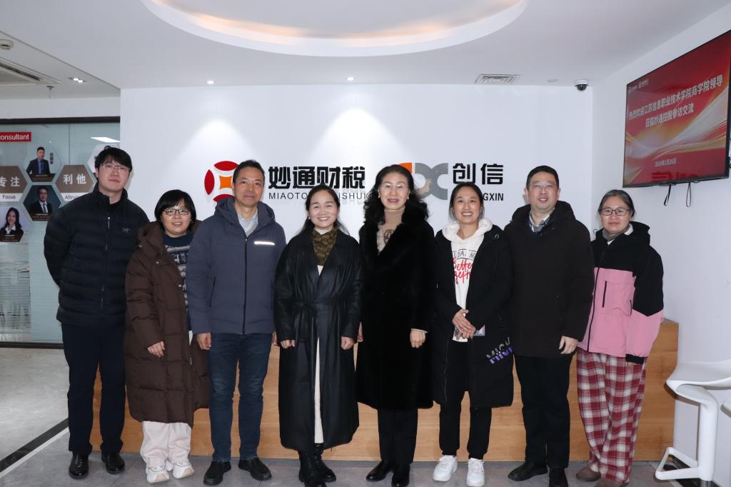 1月26日,商学院院长蔡丽巍、副院长吴明峰率队前往南通妙通财税服务有限公司开展调研活动,公司总裁马彩芹予以热情接待。