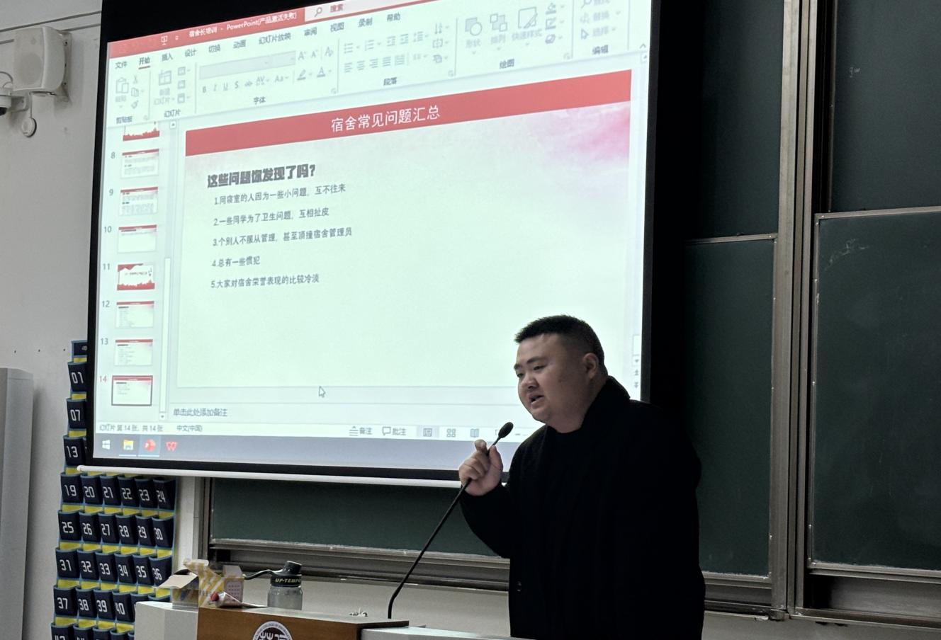 会上,孙杰老师强调了宿舍长在“一站式”学生社区建设中的重要作用,表示宿舍长是联结学院、辅导员与广大学生的关键纽带,在营造良好宿舍氛围、维护社区和谐稳定方面发挥着重要作用,并对全体宿舍长的辛勤工作表示充分肯定与感谢。