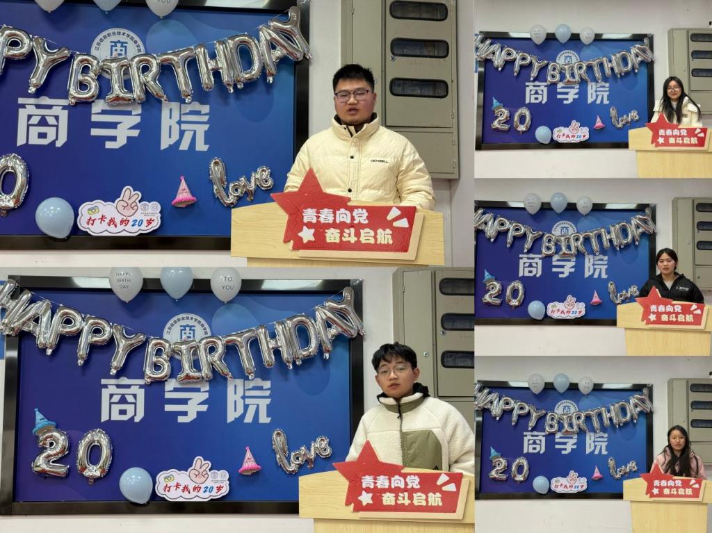 为持续深化青年学生理想信念教育,推动党建工作与成长关怀深度融合,12月29日,商学院学生党支部在厚德讲堂成功举办“青春向党,奋斗启航”主题党日活动暨“打卡我的20岁”青春纪念日主题活动的年度收官特别场。学院党总支书记张炎、党总支副书记鞠恒学出席活动。