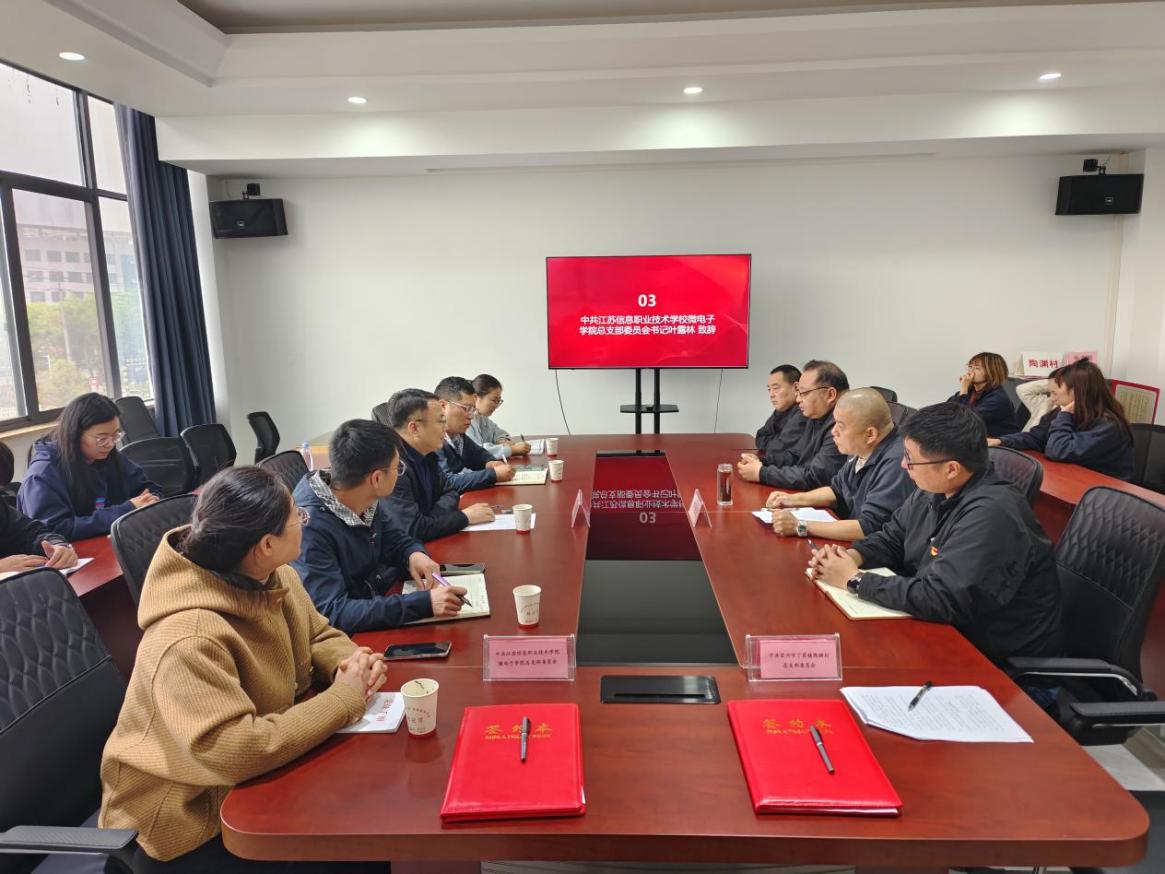 2026年4月14日,江苏信息职业技术学院微电子学院党总支与宜兴市丁蜀镇陶渊村党总支党建共建签约仪式在陶渊村党群服务中心隆重举行。