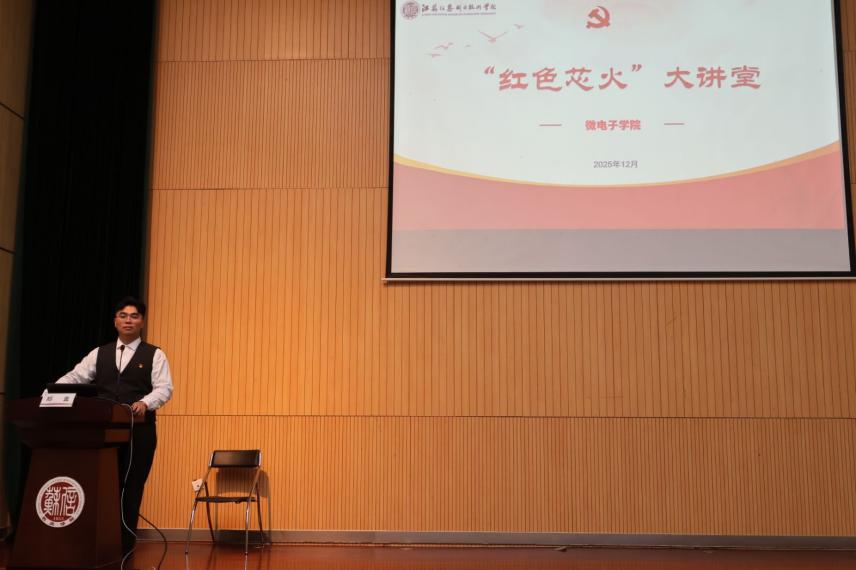 12月4日,微电子学院成功举办“红色‘芯’火大讲堂”系列活动。本次活动特邀2023届优秀毕业生苏州(创赛)孵化器有限公司总经理郑直担任主讲嘉宾,微电子学院24级、25级学生参加此次讲座。