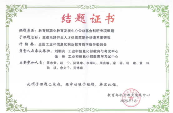 近年来,微电子技术专业共获得省级以上科研、社科和教研类项目立项累计25项,其中包括教育部职教中心人才谱系图课题、工信部教考中心集成电路行业人才供需匹配分析项目、教育部虚拟仿真技术在职业教育教学中的创新应用专项课题等国家级项目4项,江苏省科技计划项目2项,省自然基金项目1项,省教育厅教改课题7项,哲学社会科学项目3项,教育科学规划课题2项,以及其他省级研究课题6项。
