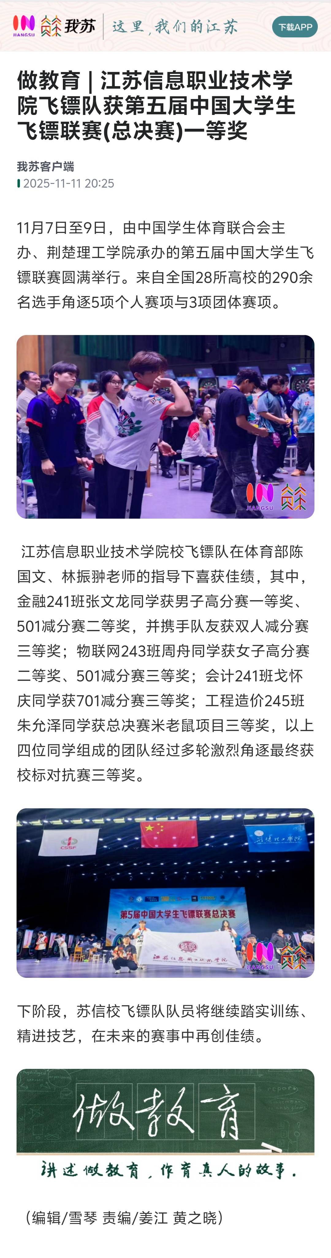 做教育 | 江苏信息职业技术学院飞镖队获第五届中国大学生飞镖联赛(总决赛)一等奖