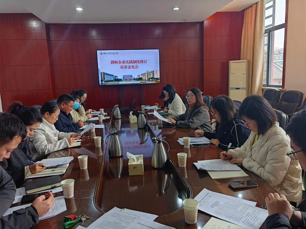 会上,甘辉主任解读了制度修订的背景,详细介绍了修订制度的主要内容,并对落实教师企业实践制度提出了指导意见。各二级学院代表结合工作实际,就教师企业实践范围、企业资质要求、实践时长等方面提出了意见和建议。