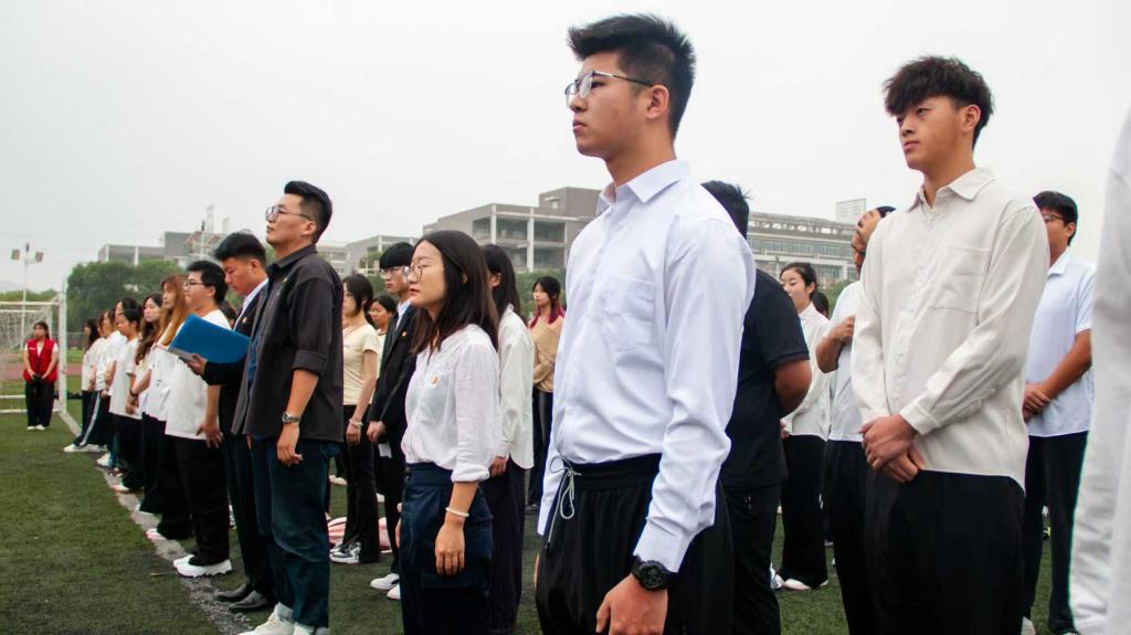 清晨7点整,国旗护卫队迈着铿锵有力的步伐护送五星红旗入场。在激昂雄壮的国歌声中,两院师生整齐肃立,注视着五星红旗在晨光中冉冉升起、迎风飘扬。