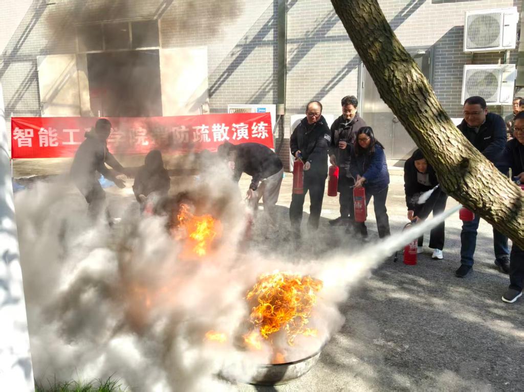 11月19日,智能工程学院组织开展专业实训消防演练活动。学院领导班子参加活动。