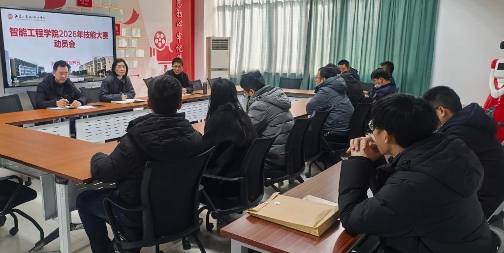 2025年12月29日,智能工程学院在S1-301学院会议室隆重召开2026年职业院校技能大赛动员会。本次会议以全力备战江苏省2026年职业院校技能大赛为核心目标,旨在通过以赛促教、以赛促学检验学院教学成果,充分展示师生专业技能水平,助力学校斩获荣誉的同时,为师生搭建实现个人价值的优质平台。此次会议的召开,标志着学院2026年职业院校技能大赛备赛工作正式全面启动。全体备赛指导教师参会,会议由学院副院长熊毅主持。