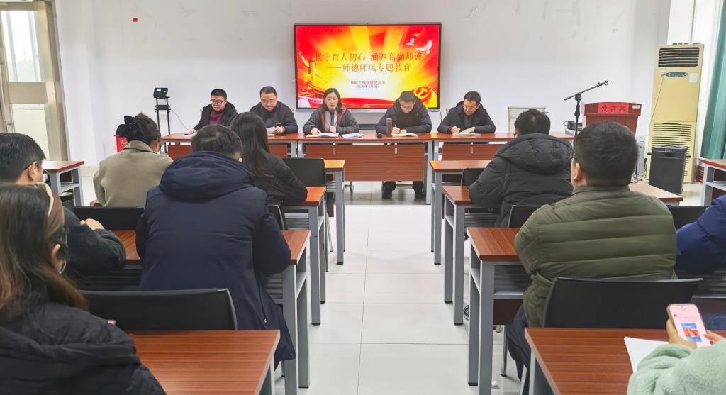 为深入贯彻落实立德树人根本任务,大力弘扬教育家精神,持续加强新时代教师队伍思想政治与职业道德建设,进一步筑牢全院教职工思想道德防线,规范职业行为,3月5日下午,智能工程学院组织全体教职工开展师德师风专题教育活动。学院党总支副书记包懿主持会议并领学相关文件,学院领导班子全体成员及全体教职工参加活动。
